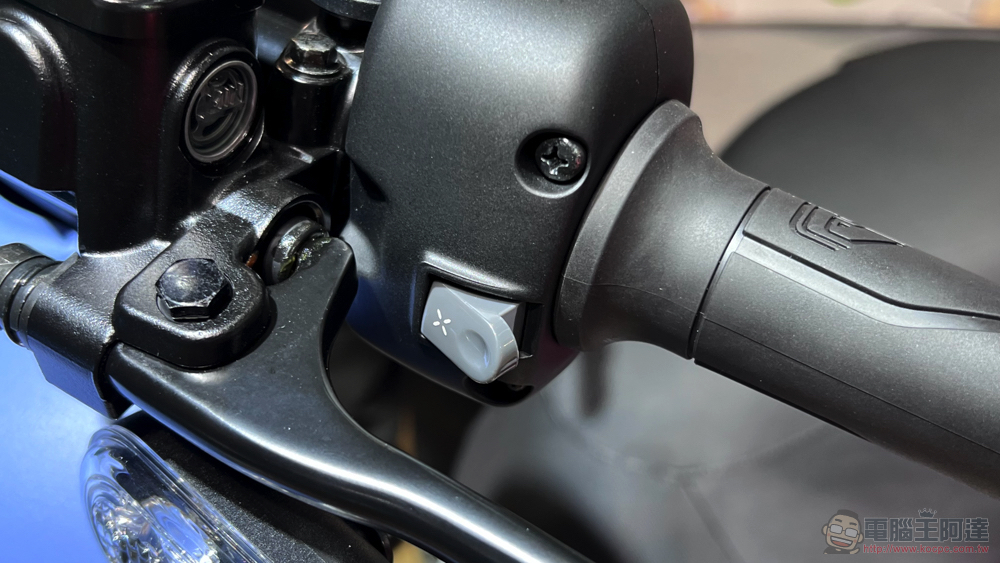 儀表的部分可以看到由女性主導,同樣與友達光電攜手開發的直立式 CROXERA Q。將宏佳騰針對電動機車所提供的各項智慧功能如:來電提醒、智慧卡以抽屜式的方式從底部彈出清楚的文字提醒;儀表的上下緣也會相應帶來多種顏色的提醒燈光,並且在一般 PBGN 車款用做倒車功能使用的左把手前方的按鈕位置,提供標示為「X」的 CROXERA 系統專用按鈕。
