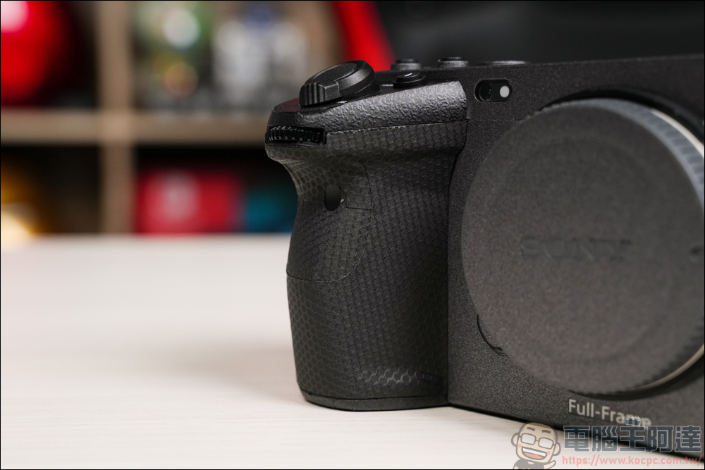 蒙皮的觸感已經很接近相機本身蒙皮的觸感了,但因為材質的關係,比起原先的蒙皮來講,算是比較滑的,如果不喜歡抓握處會滑的用戶,建議抓握處的蒙皮可以不用貼起來: