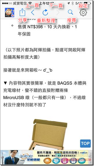 其實阿達的 App也是直接瀏覽阿達的BLOG,而且還可以全螢幕瀏覽,除此之外還有一個重要的功能: