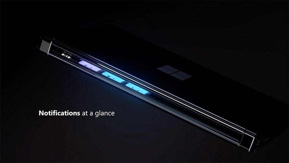 在目前的 Surface Duo 上面存在一項爭議,那就是用戶對外部顯示器的需求,雖然你可以像標準的手機一樣反向折疊讓內螢幕變成外螢幕,但兩個螢幕還是必須同時點亮;在 Surface Duo 2 時,微軟導入了 Glance Bar 功能,讓手機閉合時能夠從側邊條提供更多資訊,但對於想要更易於瀏覽與互動資訊的人來說並不是理想的選擇。憑藉這樣的新專利,設備可折疊成單螢幕,向外的螢幕可以不斷顯示資訊,解決了用戶對外螢幕的需求,讓你依照自己的喜好來使用。