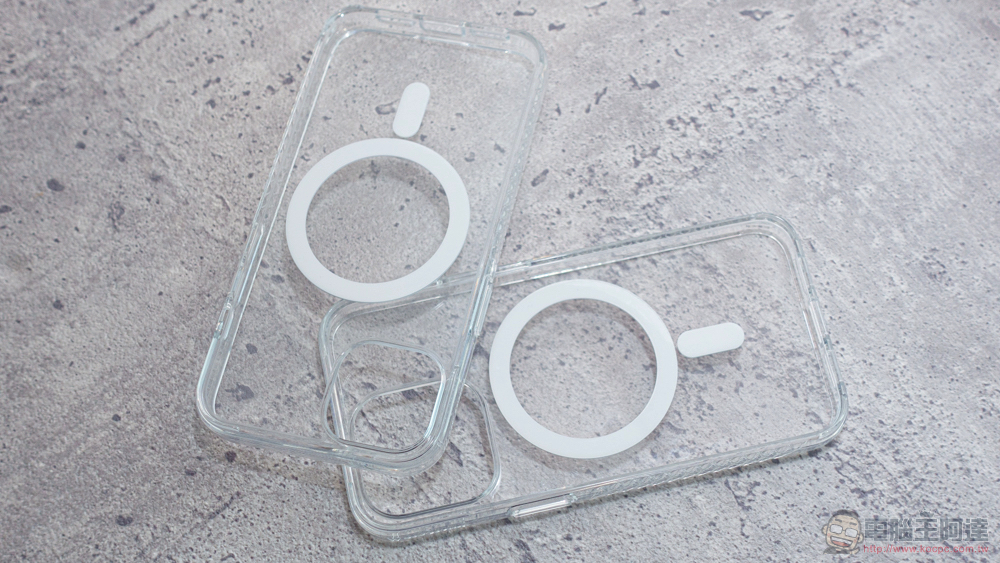 加入磁吸規格的 imosCase 美國軍規認證雙料防震保護殼,最明顯的差異就是在其超通透的 PC 材質美背上,嵌入了完美對應 iPhone 磁吸定位的磁石環: