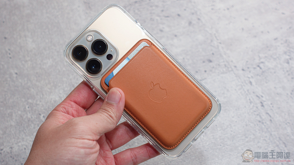 裝上原廠的 MagSafe 皮革卡套對位不僅精準,固定效果也好: