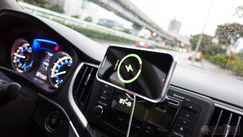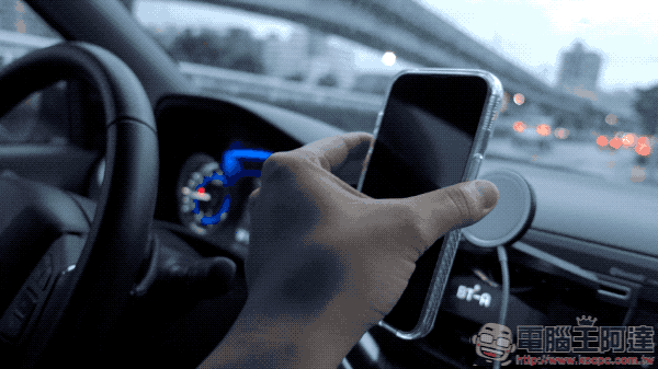 也因為這樣,即便是使用沒有特別加強磁力的 MagSafe 車架。我還敢以相對比較容易掉落的橫置方向來在車上使用: