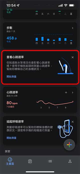 iOS 下載:點這裡 - 在主畫面向下捲,找到「查看心跳速率」,並點擊「開始測量」。如果你沒有看到該項目,請先完全關閉應用後再重新啟動。