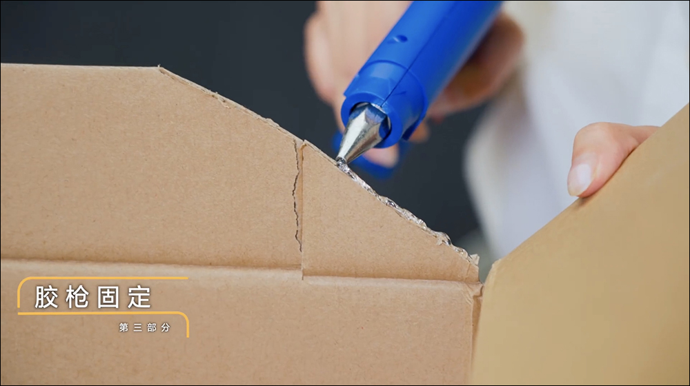 確認沒問題後,就能開始拿出熱熔槍開始將紙板固定。