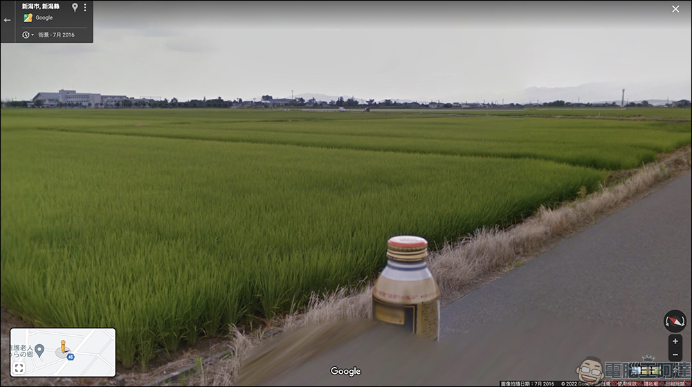 日本新潟發生 Google 街景漂浮咖啡事件,超巨大罐裝咖啡被發現佇立在田邊