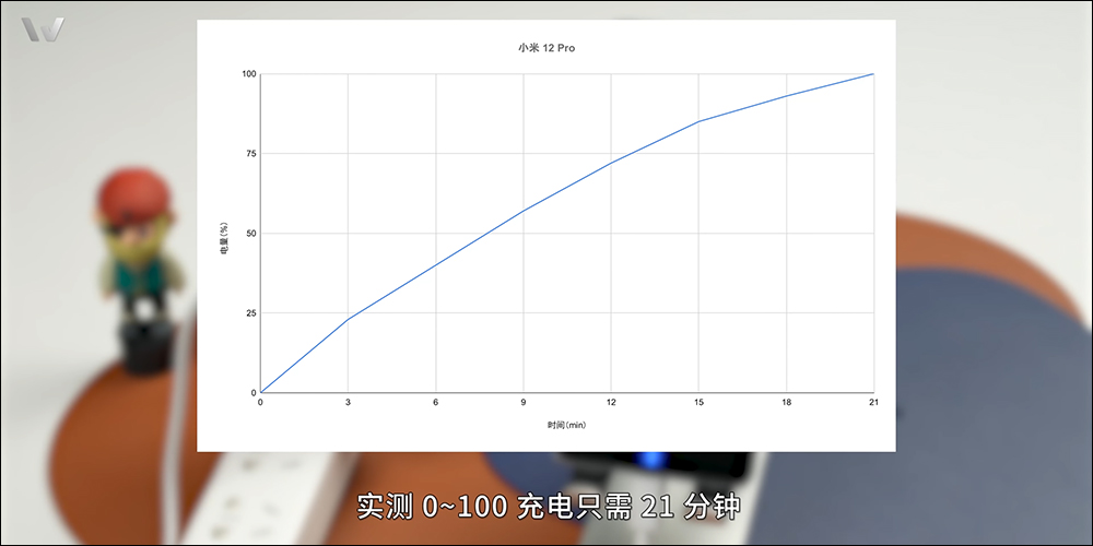 根據他們實測的結果,小米 12 Pro 電量從 0% 充電至 100% 只需短短 21 分鐘,與官方宣稱的 18 分鐘(疾速模式)、24 分鐘(恆溫模式)差距不遠。