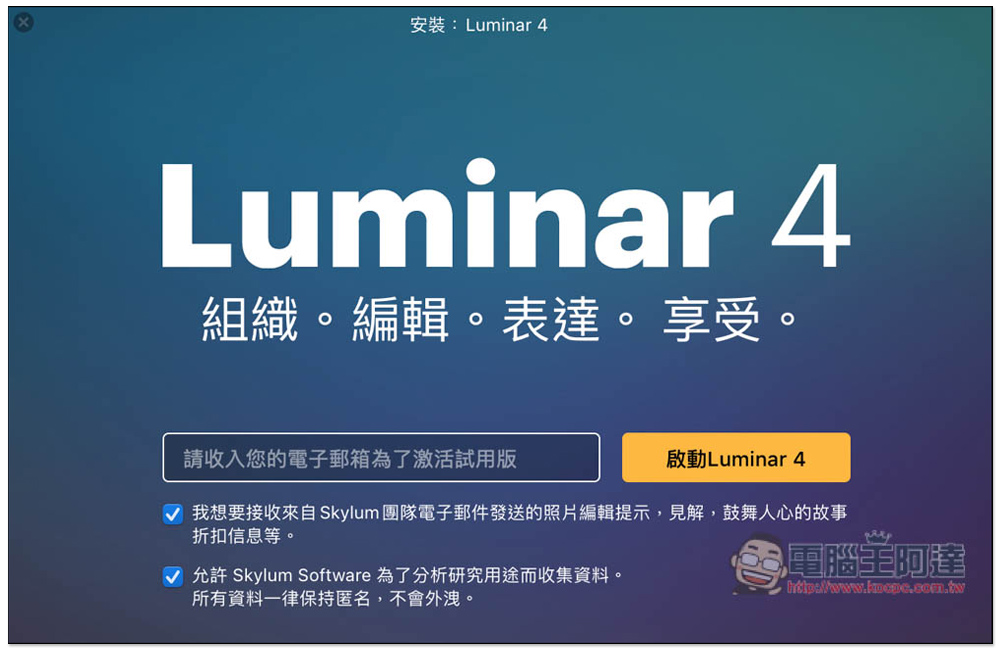 以前說到修圖,都要懂一些專業知識與技術才行,但隨著軟體越變越強,現在就算你是電腦生手也能輕鬆成為修圖大師,透過這套 Luminar 4 專業修圖軟體,你只需要知道怎麼把照片讀進修圖軟體即可,接著藉由 AI 強大的功能,一鍵就能把照片調整成跟大師一樣的品質。Luminar 4 原價原本要 89 美金,約台幣 NT$2,500,官網正祭出限免活動,只要填寫 E-Mail 你就能免費獲得、終身使用,而且是 Windows、Mac 版都有。