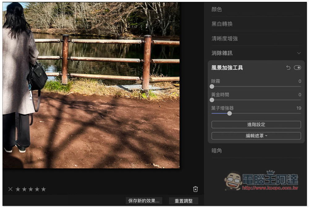 還有風景加強工具,如果你覺得樹葉不夠好看,試試看葉子增強器,霧氣太重使用除霧功能可改善不少: