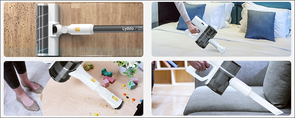 針對不同的清潔場景, Lydsto 自集塵無線手持吸塵器 H4 提供豐富的清潔刷頭和吸頭配件,能廣泛清潔家中地面、沙發隙縫、桌面、床褥等空間。