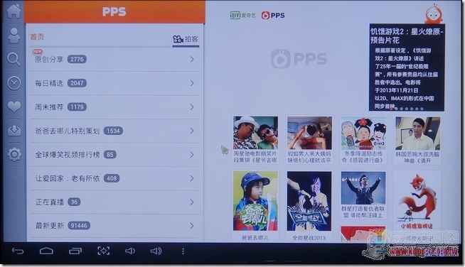 內建 Play 商店,您可以下載自己喜歡的應用程式,如PPS、風行網…等等,都非常適合在電視上使用: