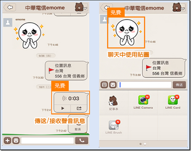 當然您傳送文字訊息、LINE貼圖與語音訊息(無線電)給對方也是免費,不計算流量: