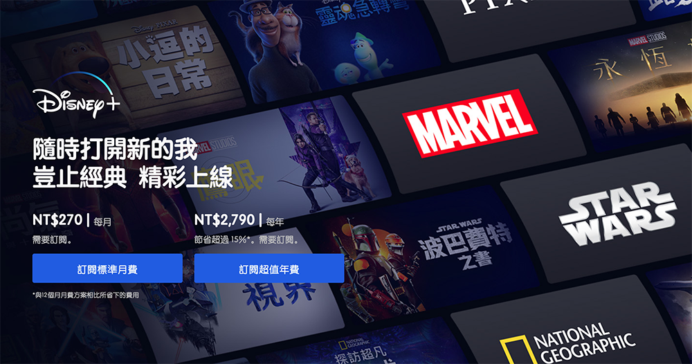 目前來講,在台灣這邊雖然月費依然維持在每個月新台幣 270 元/每年 2,790 元。也還沒有導入更便宜有廣告方案的相關消息。不過隨著 Disney+ 積極擴充內容,從初步的迪士尼、皮克斯、漫威、星際大戰、國家地理及 Star 等六大標誌性品牌旗下源源不絕的娛樂影音內容開始。現在也不僅有更多原創內容,最近更積極加入韓流娛樂內容。
