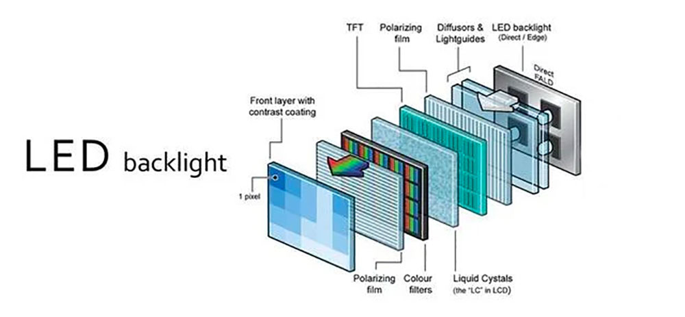 除了 OLED 以外,所有螢幕技術都透過多層色彩濾光片和液晶發光來產生影像,而 OLED 則是具備自體發光的像素。大多數背光面板可能會顯示一些殘像,尤其是螢幕邊緣的「漏光」,技術上來說這算是邊緣照明的殘像。
