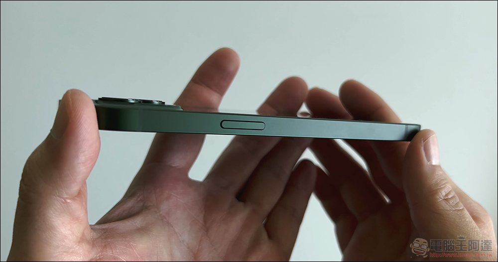 除此之外與 Pro 之間的差異點是,採用鋁金屬中框的 iPhone 13 系列,中框質感呈現出細膩的霧面手感: