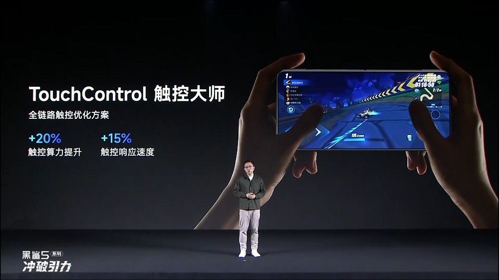 不止肩鍵,黑鯊5 系列採用144Hz電競屏,加上「TouchControl 觸控大師」,觸控採樣率高達每秒 720Hz,觸控響應速度提升15%。