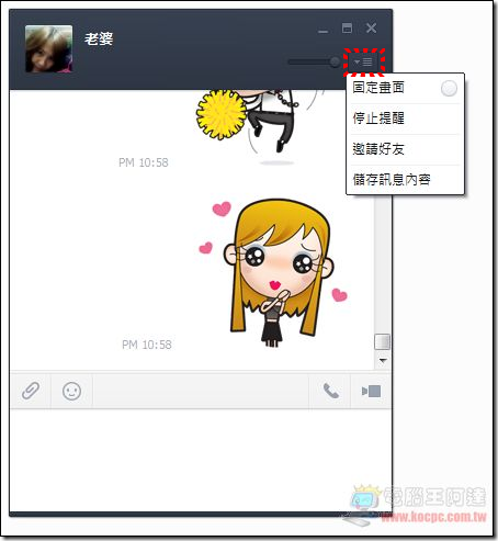選擇聯絡人,右上角可設定提示方式或邀請好友開聊天室,當然語音 / 視訊聊天都是沒問題的,如果怕訊息內容消失的話,還可以另存純文字檔: