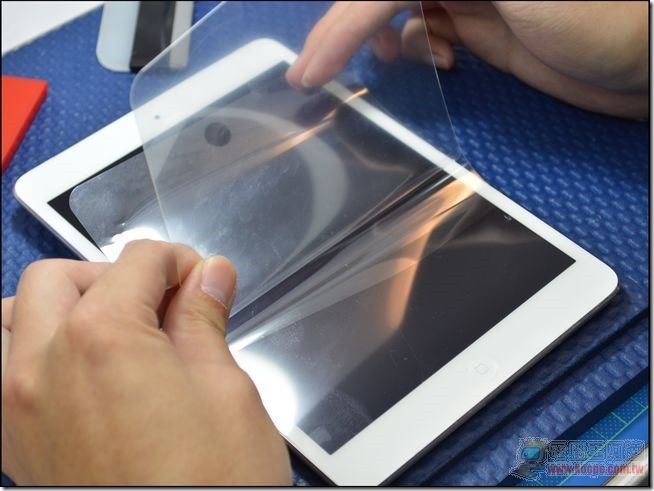 入塵處理,完成iPad mini Retina 螢幕保護貼施工: