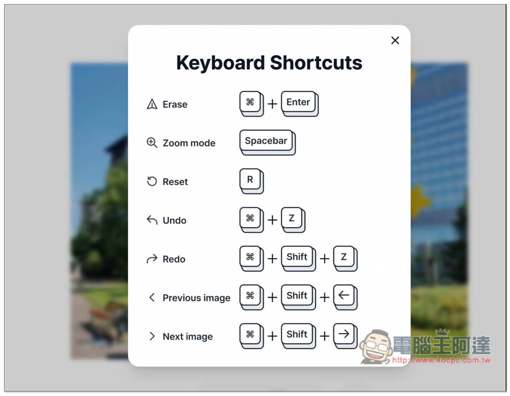 這工具也支援快捷鍵,想操作更快的人可以記一下。另外如果不小心點錯要去背的內容,也提供復原功能: