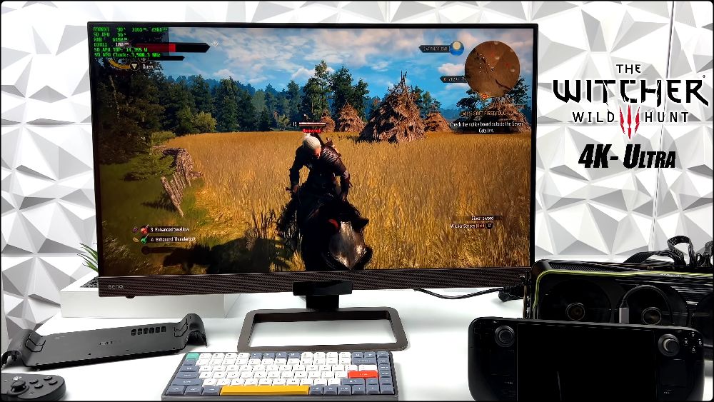 ETA PRIME 以這樣的配置進行了測試,其中 3DMark Fire Strike 可以看到 GPU 分數爆增 5.5 倍,《巫師3:狂獵》能在 4K 解析度下跑出 100 幀的成績,而《電馭叛客2077》與《艾爾登法環》在 1080p 解析度下也有 40 幀出頭的成績,堪稱有感升級。