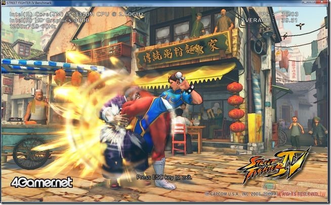 遊戲表現部分以快打旋風4測試,以1280*768解析度跑分,平均為 30~40 FPS,執行一般遊戲沒有問題,但跑WOW之類的 3D 遊戲可能會比較吃力: