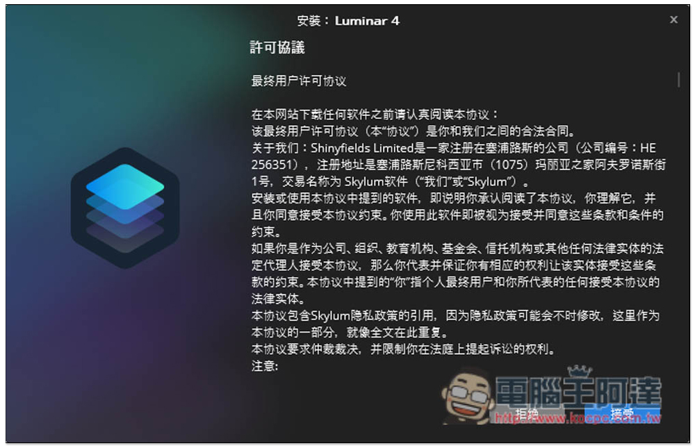 我以 Windows 版為例,這款有中文介面,所以不用擔心看不懂的問題。安裝過程基本上就一直按下一步: