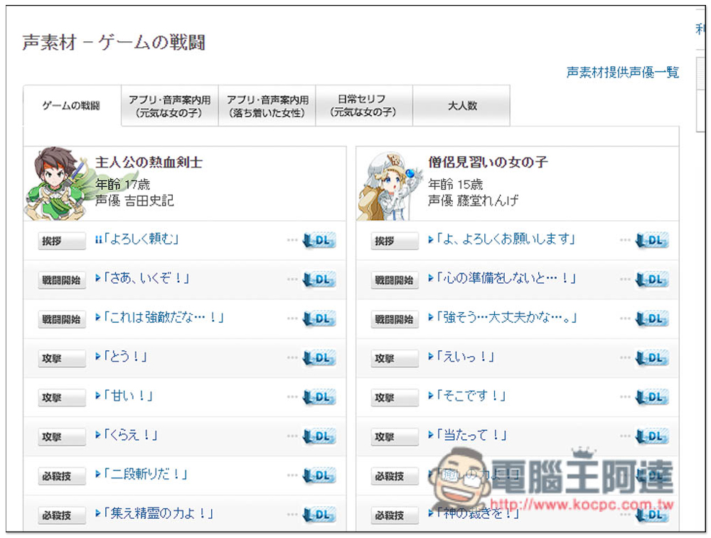 大家都知道,日本節目、遊戲、電視都很會使用音效,也因此製作影片時,你可能會想使用類似這種音效,而好消息,日本在這音樂方面網路上有很多免費素材可用,而且是可以拿來商業用用,像「効果音ラボ」就是其中之一,提供上千首免費音效,種類超多,連遊戲中會挑到的女性對話聲音、戰鬥、歡呼聲等等都有,無需註冊就能直接下載使用。
