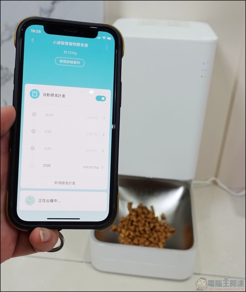 實際測試也可以看到app顯示出糧中時,機器也一邊認真的吐飼料出來:
