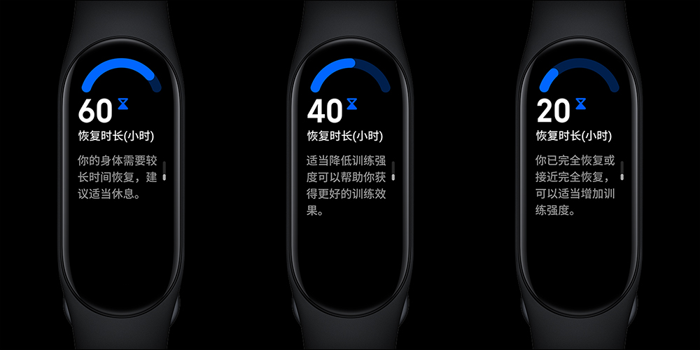 另外,小米手環 7 能根據近一週的 EPOC(運動後過量氧耗)給出目前運動的建議,避免用戶運動過量造成受傷的風險。