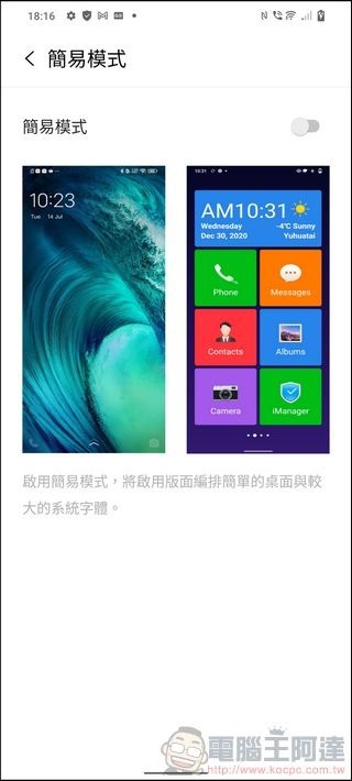 家中有長輩不會使用智慧手機嗎?Funtouch OS 也可以切換成大圖示簡易模式,讓長輩或小朋友也能輕鬆享受科技的便利: