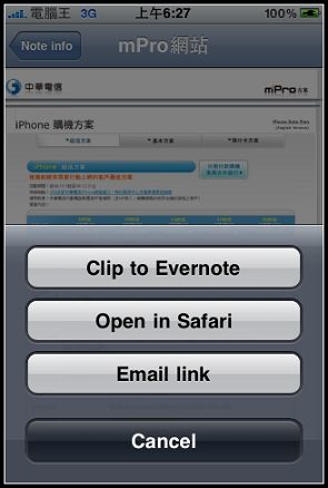 ▲照相後就直接上傳到雲端的EVERNOTE裡面,沒錯,EVERNOTE是不折不扣的雲端服務的標準範例,不論存取都是在雲端的伺服器完成。