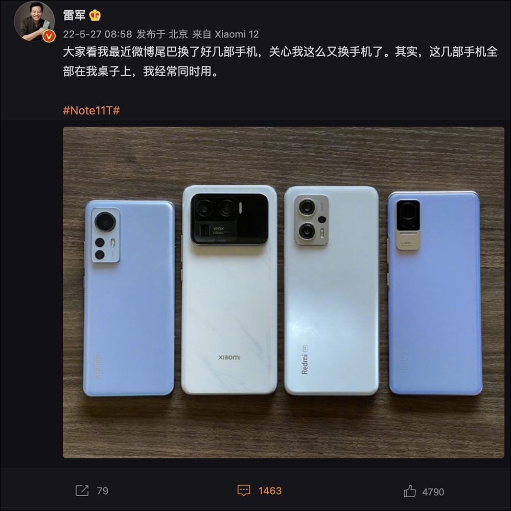 有網友就在貼文底下留言詢問「應該還有一部吧?」,雷軍也給了一個愛心回應。(難道是小米 12 Ultra?)