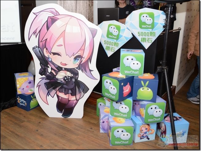 一進入會場就有相當多可愛的 WeChat 公仔歡迎大家,同時也有此次發表的重點社群遊戲主角造型的擺設物: