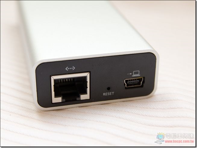 TOGOBOX 頂部配置了RJ-45有線網路接孔,Mini USB和軟體重置(RESET)鈕: