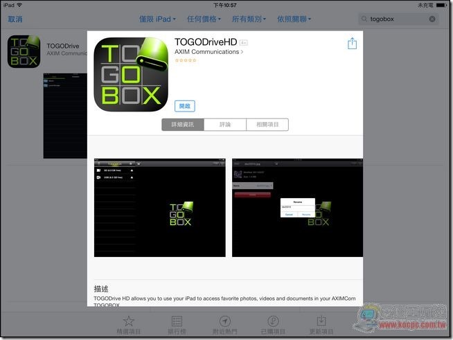 當您手上的行動裝置與TOGOBOX連接以後,也能夠過「TOGODrive」進行資料的簡單編輯: