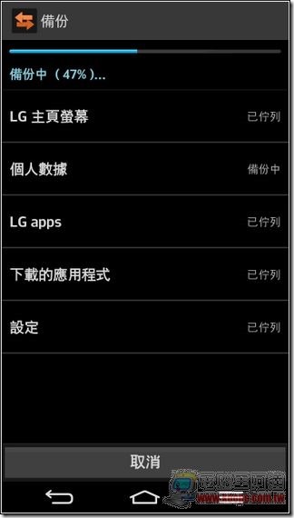 「LG Backup」則是可以幫您備份各項設定與內容,系統升級或更換其他 LG 手機時就可以無痛轉移: