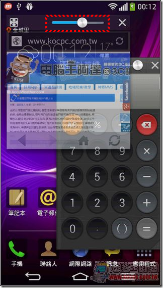 LG 獨家也是他最好用的功能之一「Q Slide」多工視窗功能,在 LG G Flex中依然健在,尤其是搭配六吋螢幕使用起來更加方便: