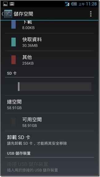 Acer Liquid S2 內建 16GB ROM,在正常狀態向預設可用的剩餘空間接近12GB,可自行下載安裝App,記憶卡則最大支援到64GB,可放置照片、影片等多媒體內容,應該很夠用了:![]()