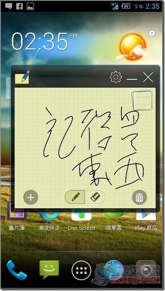 在單機使用時則是可以透過「LIVE SCREEN」輕鬆的擷取手機上的畫面,並以下方的工具插入塗鴉、照片、文字等內容: