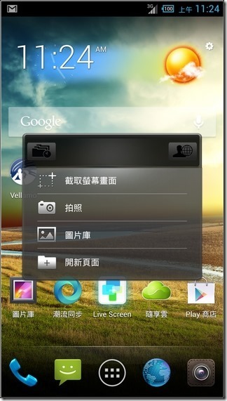 Acer Liquid S2在UI部分採用接近 Google 原生介面,預設有五個桌面可延伸增加到九組:![]()