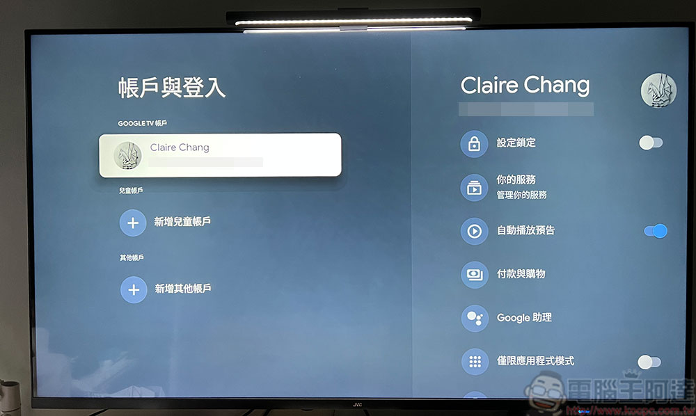 有別於過去 Google TV OS 僅能登入一組主帳號,最新版的作業系統讓家中每位成員都可以登錄自己的 Google 帳號,隨著帳號切換即可顯示個人化的首頁與影片推薦等內容。另外,如果家裡有小朋友,還可以設定兒童帳號,篩選掉不適當的影片推薦內容,家長可安心讓孩子自己看影片。家長還可以設定家長監護功能來限制孩子觀看的時間和系統可顯示的內容以及就寢時間。