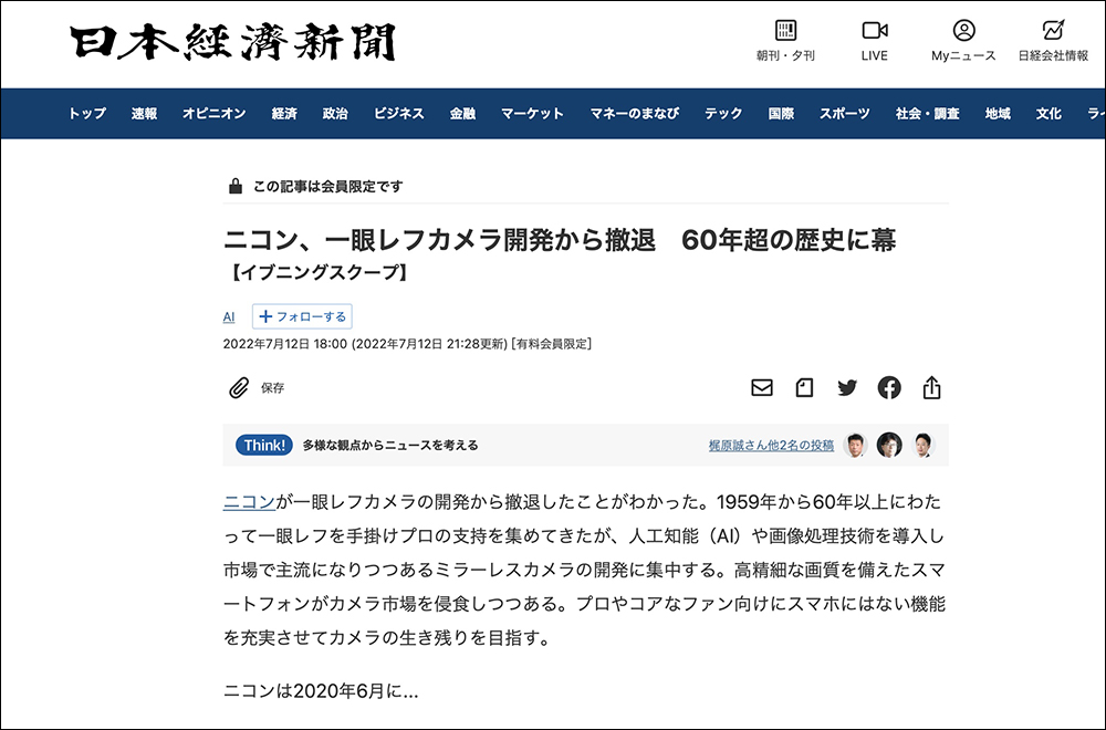 至於 Nikon ,今(22)日來自《日本經濟新聞》的報導,指出 Nikon 「傳聞」將終止單反相機開發,未來將全面專注於 Nikon Z 系列無反光鏡相機機型的開發。