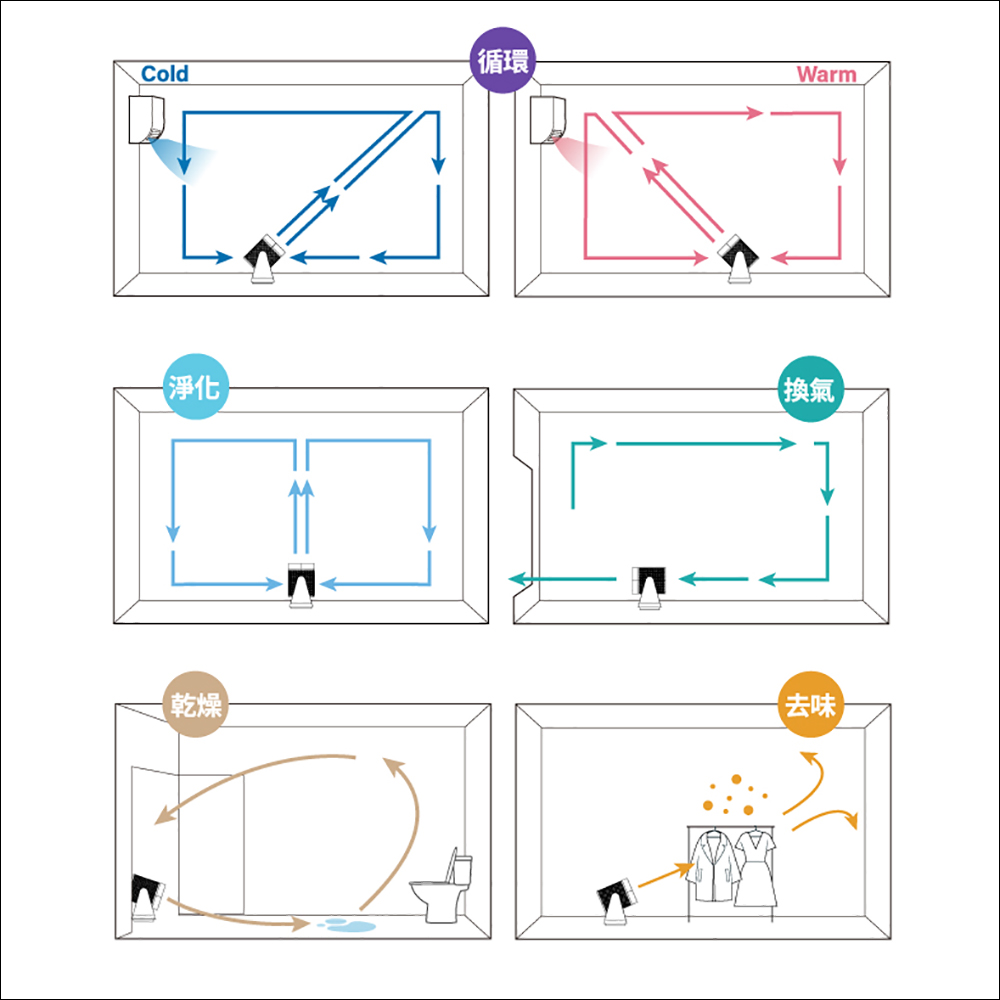 適中的運行音量與多角度調整,無論是在客廳、小孩房、臥室或廚房使用都十分合適。