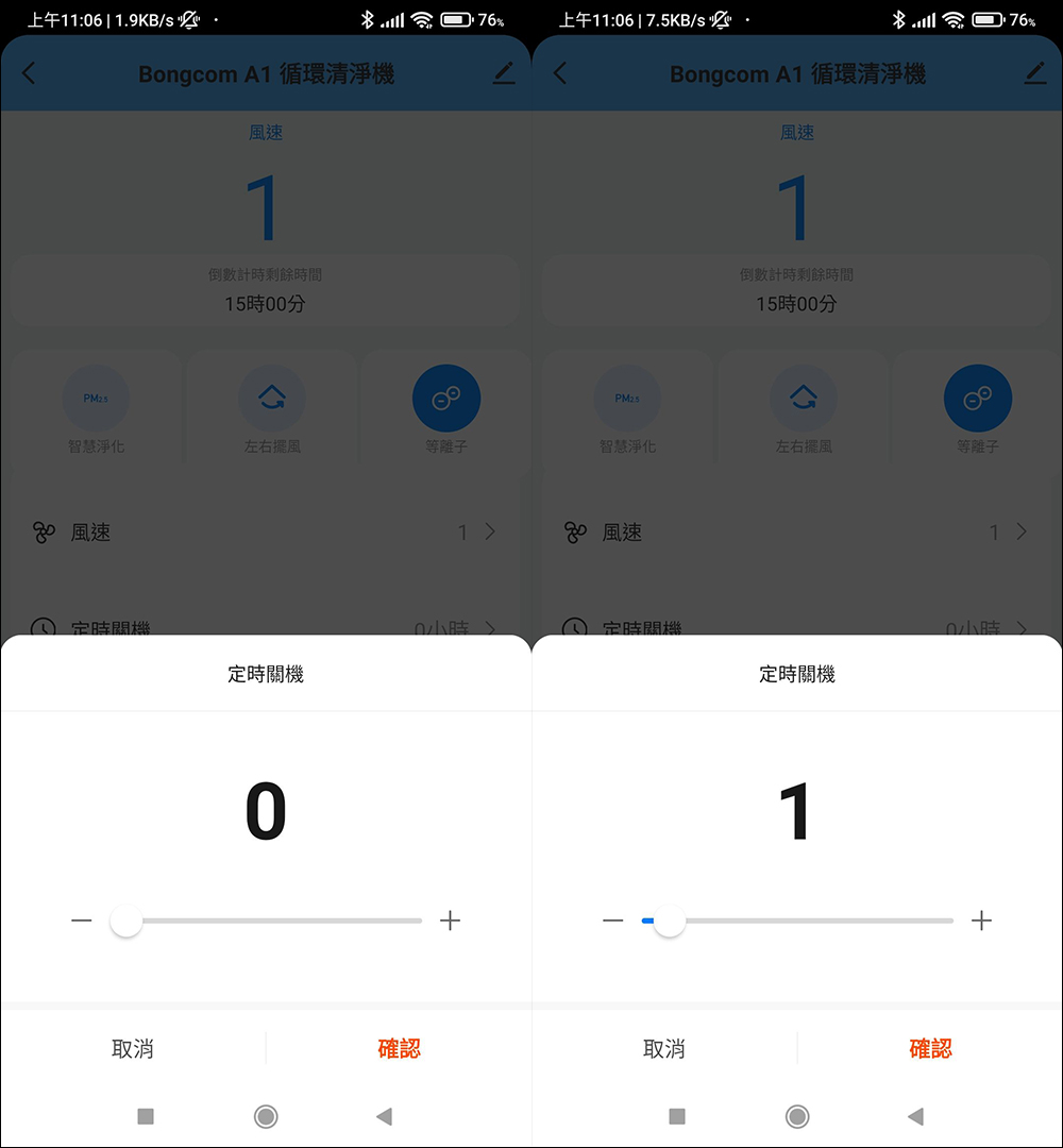 另外,幫康 A1 循環清淨機支援預約定時開關,可設定 1~24 小時的範圍。