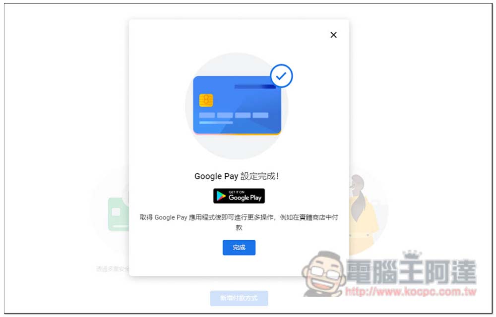 接著會進入 GPay 頁面,訂閱之前你需要先建立土耳其地址的付款方式,因此請按 “新增付款方式”: