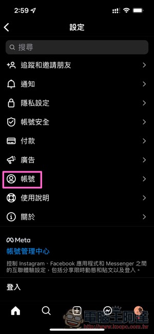 想要尋找 Instagram 自動產生字幕的開關的話,先要透過 App 介面右上角的「三」三明治選單按鈕,即可展開找到「設定」。進入之後就可以看到下面的頁面。