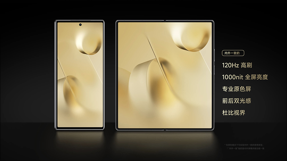 無論是內外側的雙螢幕,皆具備最高 120Hz 螢幕更新率、1,000 尼特全螢幕亮度、專業原色螢幕、前後雙光感和 Dolby Vision 杜比視界。