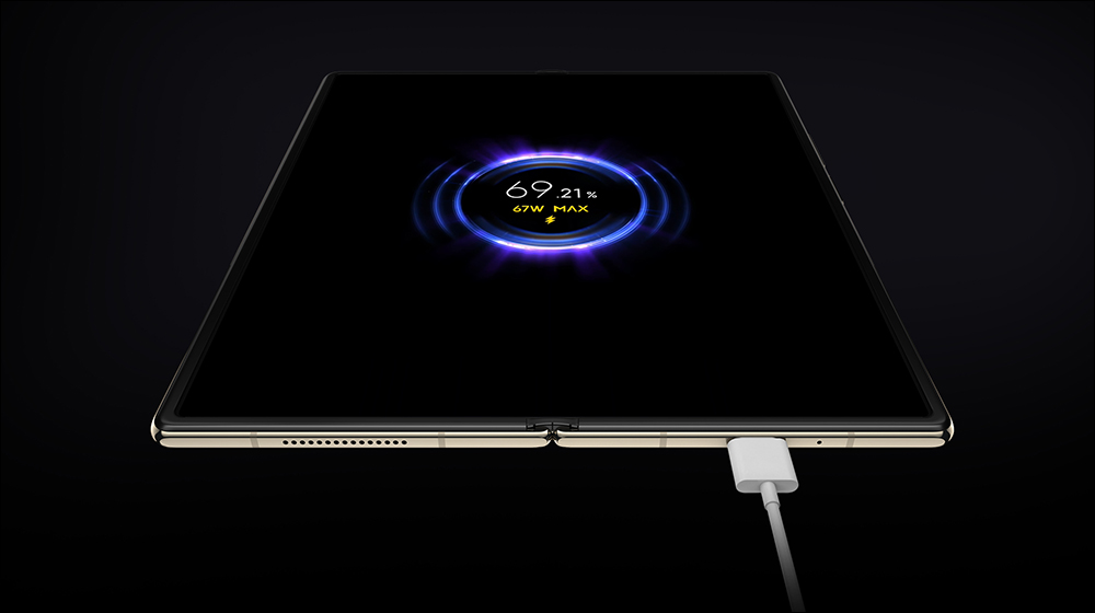 電池方面, Xiaomi MIX Fold 2 內建 4,500mAh 並聯雙電芯高能量密度電池,搭配 67W 快速充電能在 10 分鐘充電至 38%、40 分鐘為手機充電至 100% 。