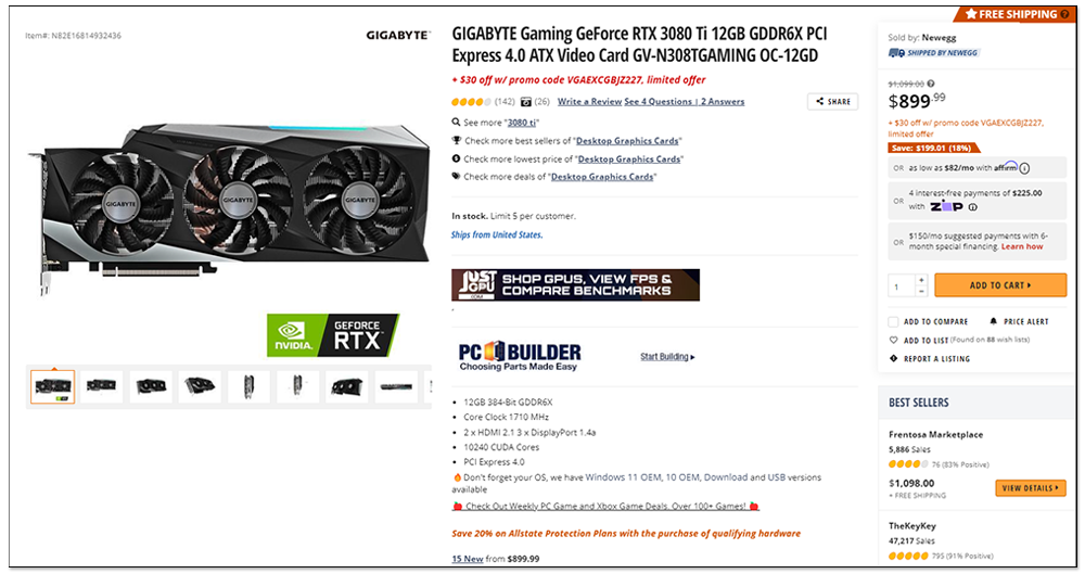 RTX 3080 Ti 12GB 價格比 RX 6900 XT 貴 200 美金:
