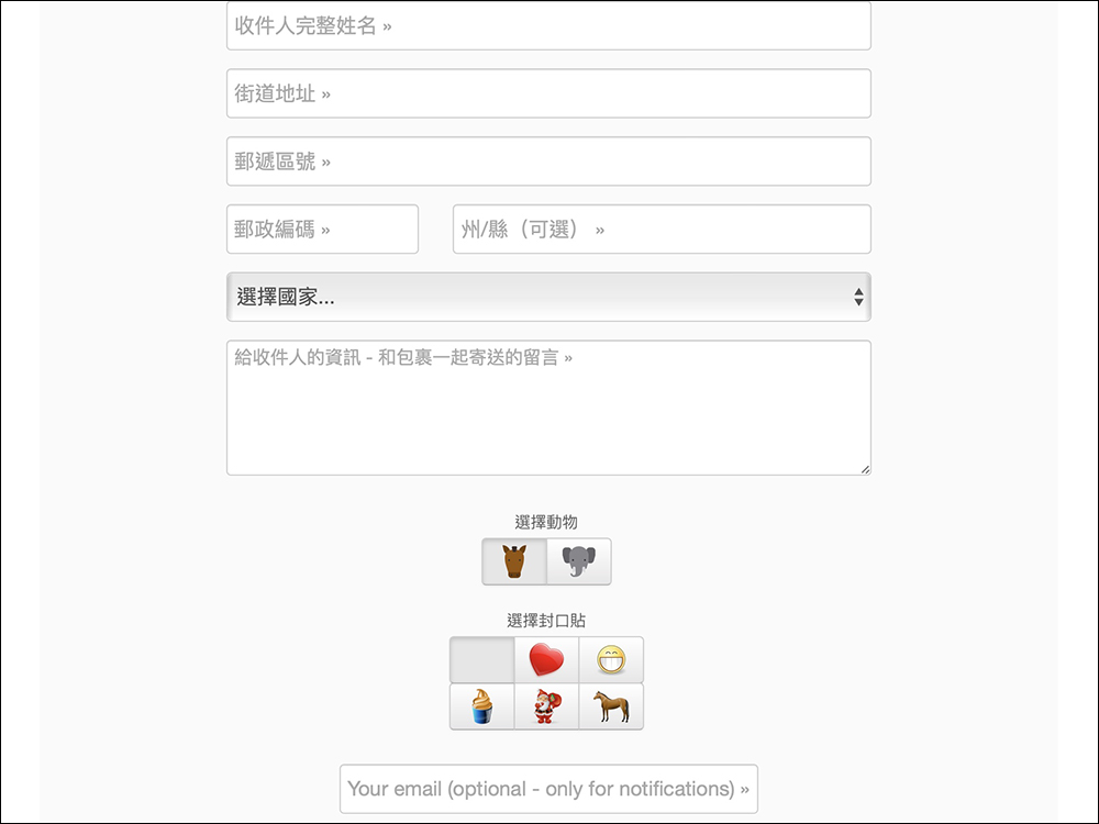 訂購時只要填寫收件者資訊,以及要和包裹一起送給對方的留言,接著選擇馬或大象的糞便,最後選擇要貼上的封口貼圖案,像是愛心、笑臉、霜淇淋、聖誕老公公等封口貼。